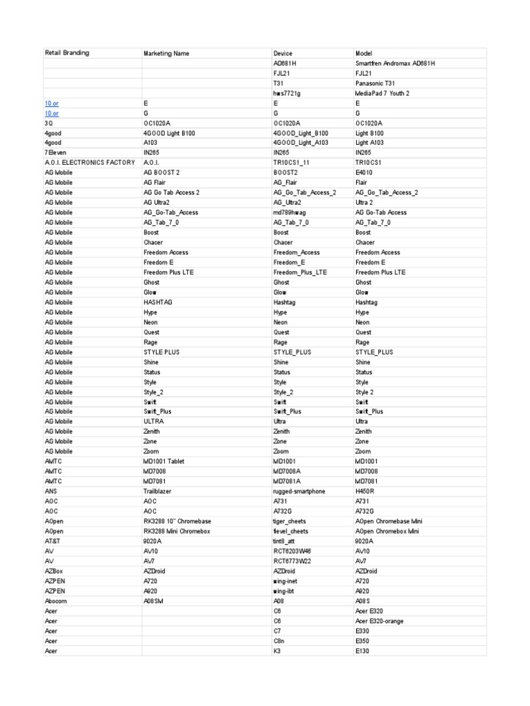 Google Play Supported Devices Sheet 1 Mobile Telecommunications User Equipment Media Technology
